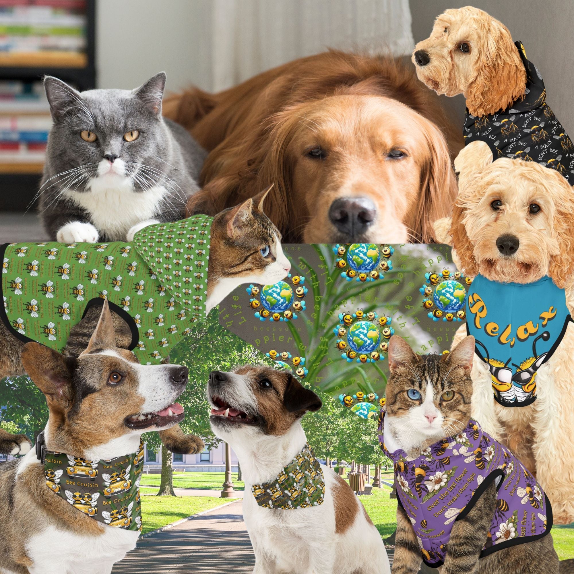Relaxing pet bandana collar supporting their best friend, the bees - includes adjustable buckle up black collar