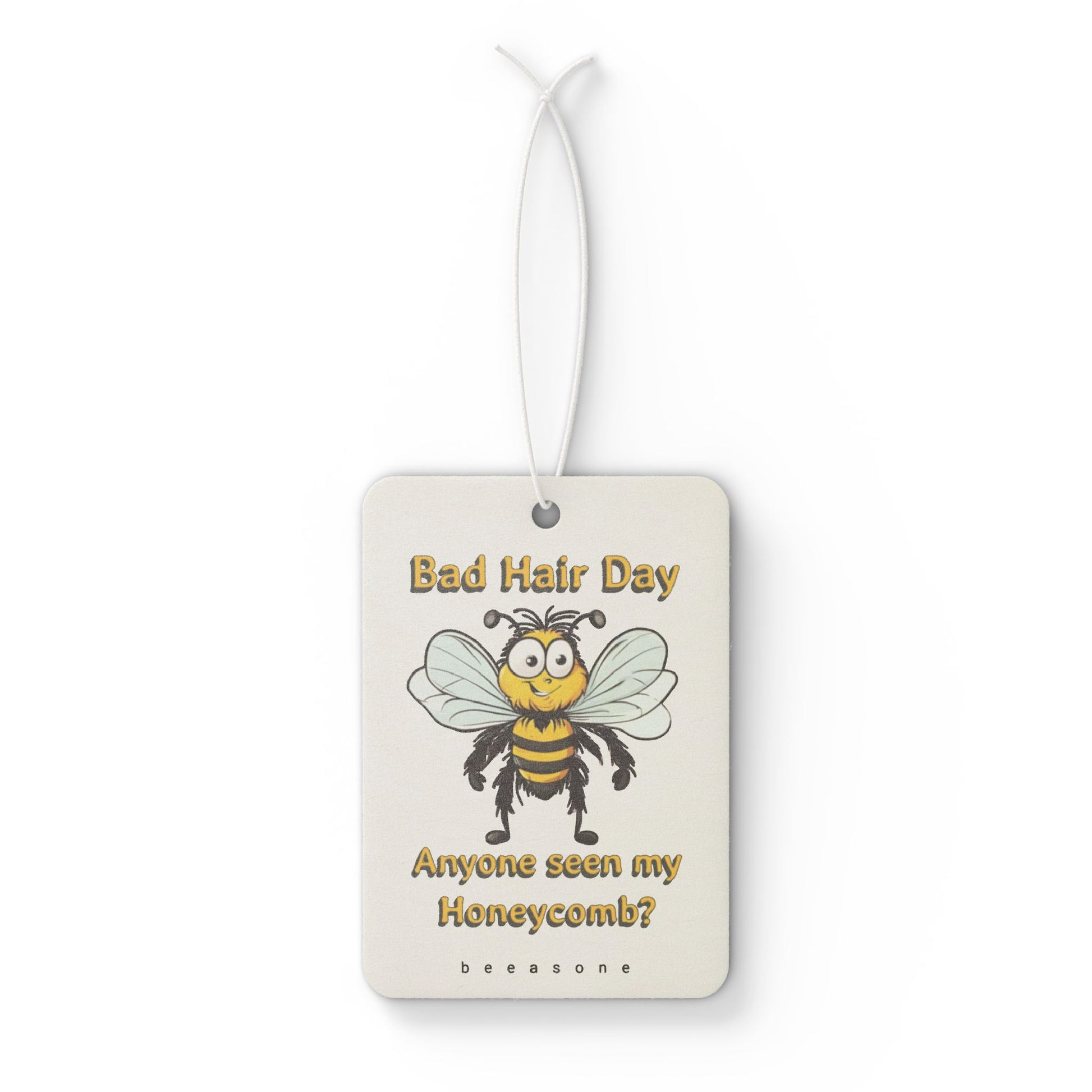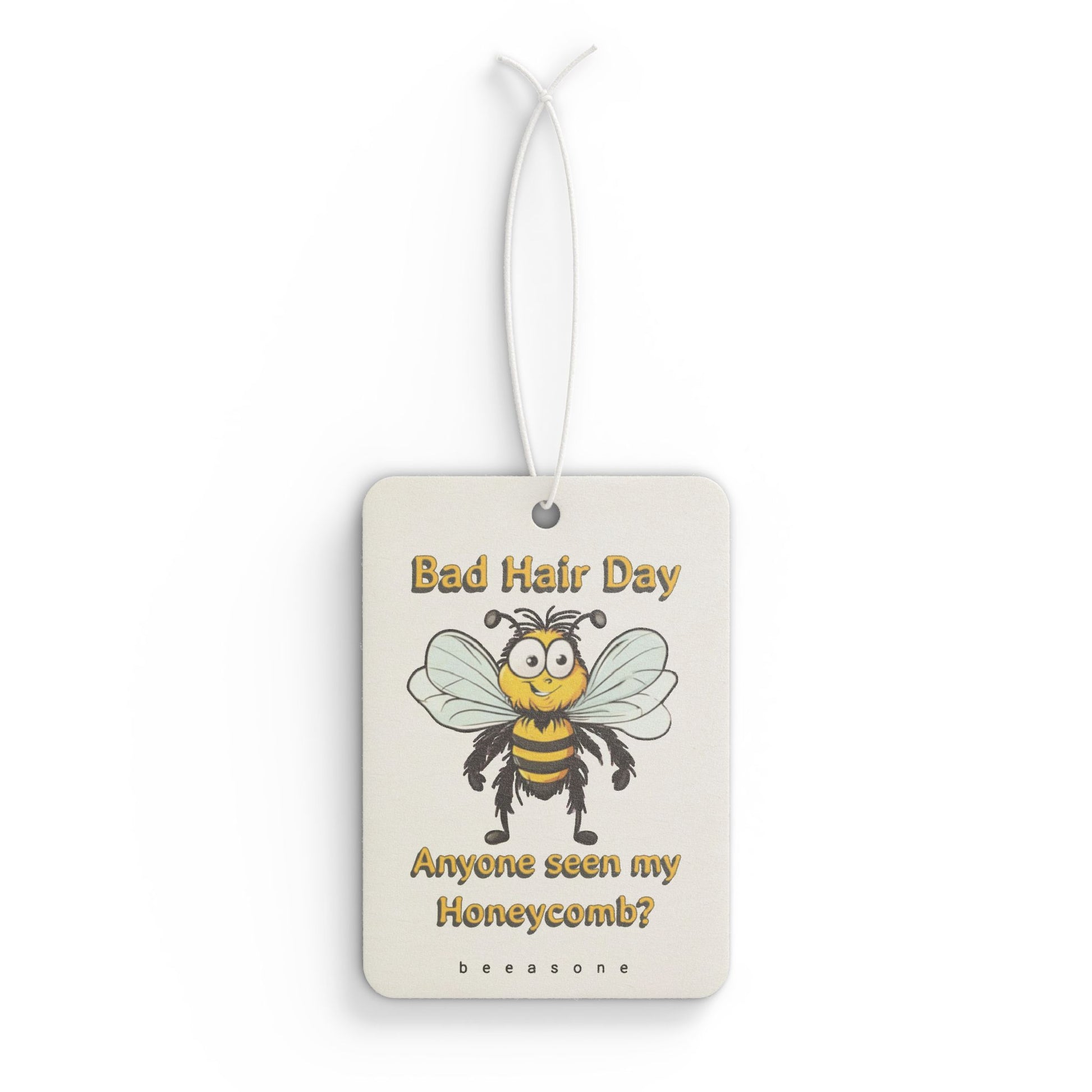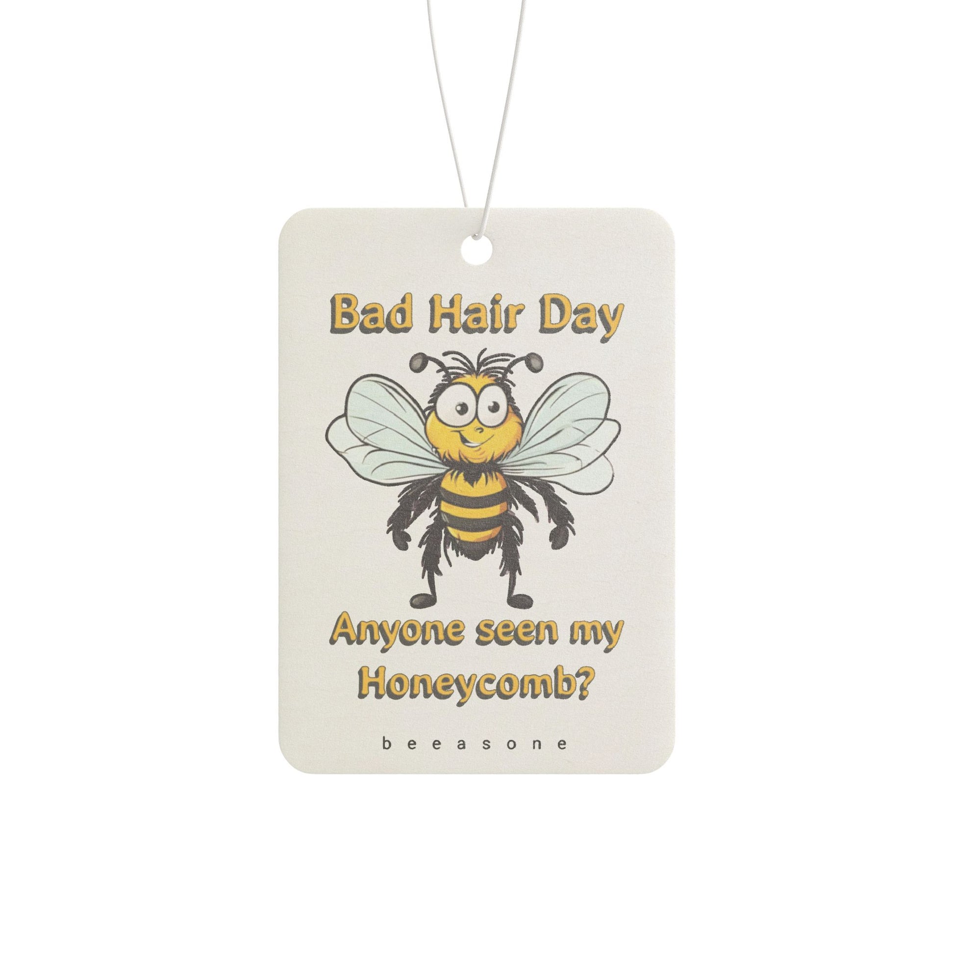 Add a touch of personality to your driving experience along with a pleasant aroma thanks to this unique car "Bad hair day. Anyone seen my honeycomb beeasone" air freshener. Available in three captivating scents: Pine, New Car, and Black Ice. Designed for both functionality and style, this air freshener enhances your car's interior while delivering long-lasting fragrance. Choose your favorite scent and enjoy a fresh, pleasant atmosphere on every ride.