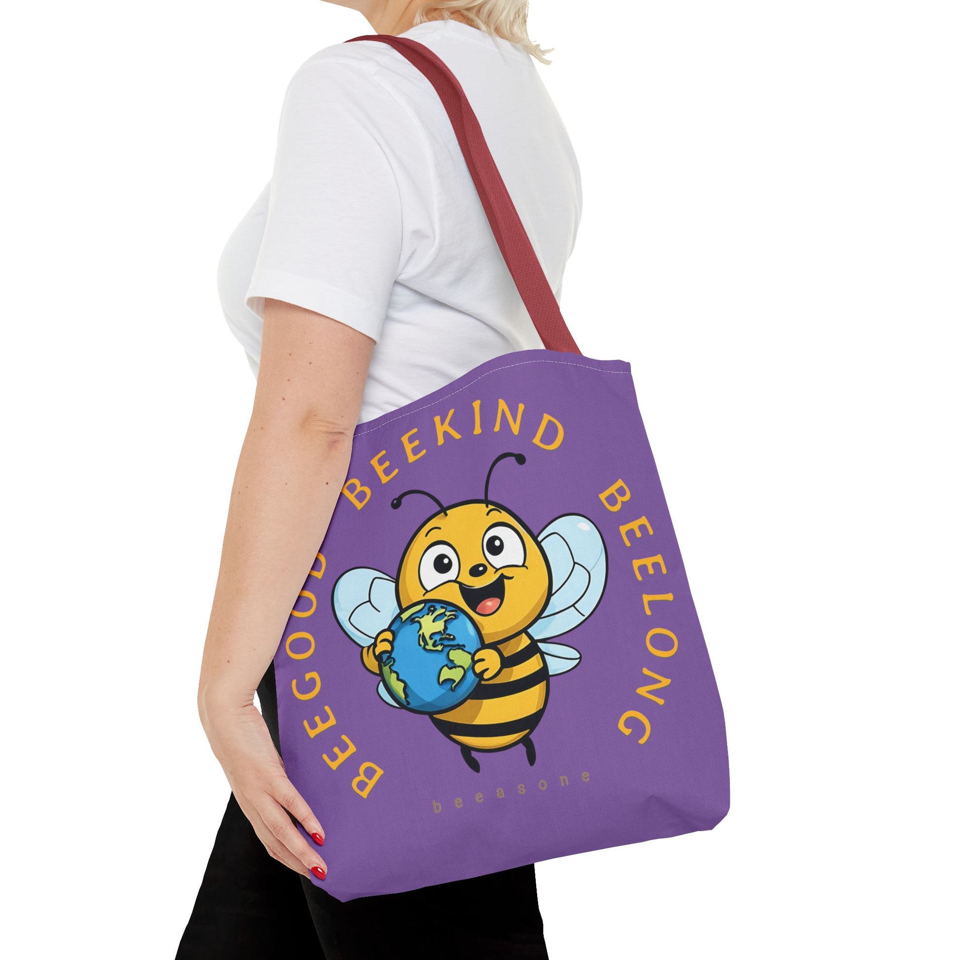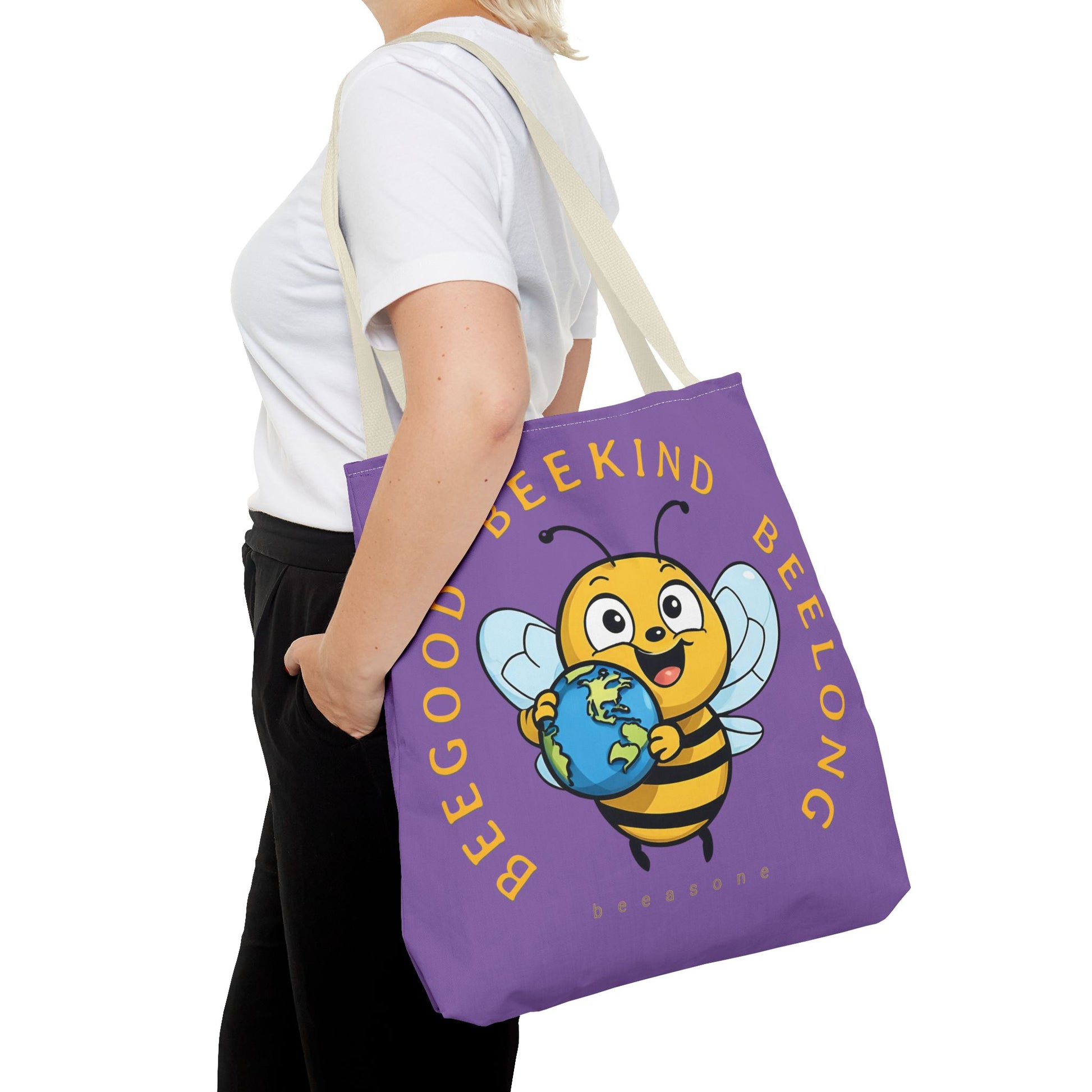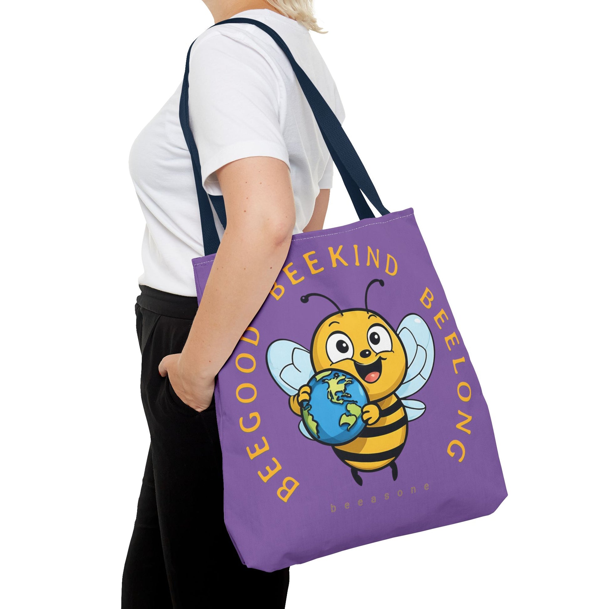 Feel great carrying this stitched seams Beegood Beekind Beelong beeasone cotton webbing straps, and nonwoven laminate lining for high-end durability.