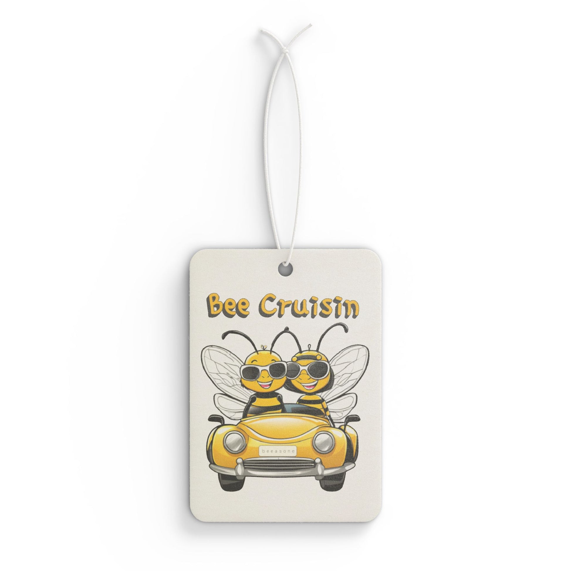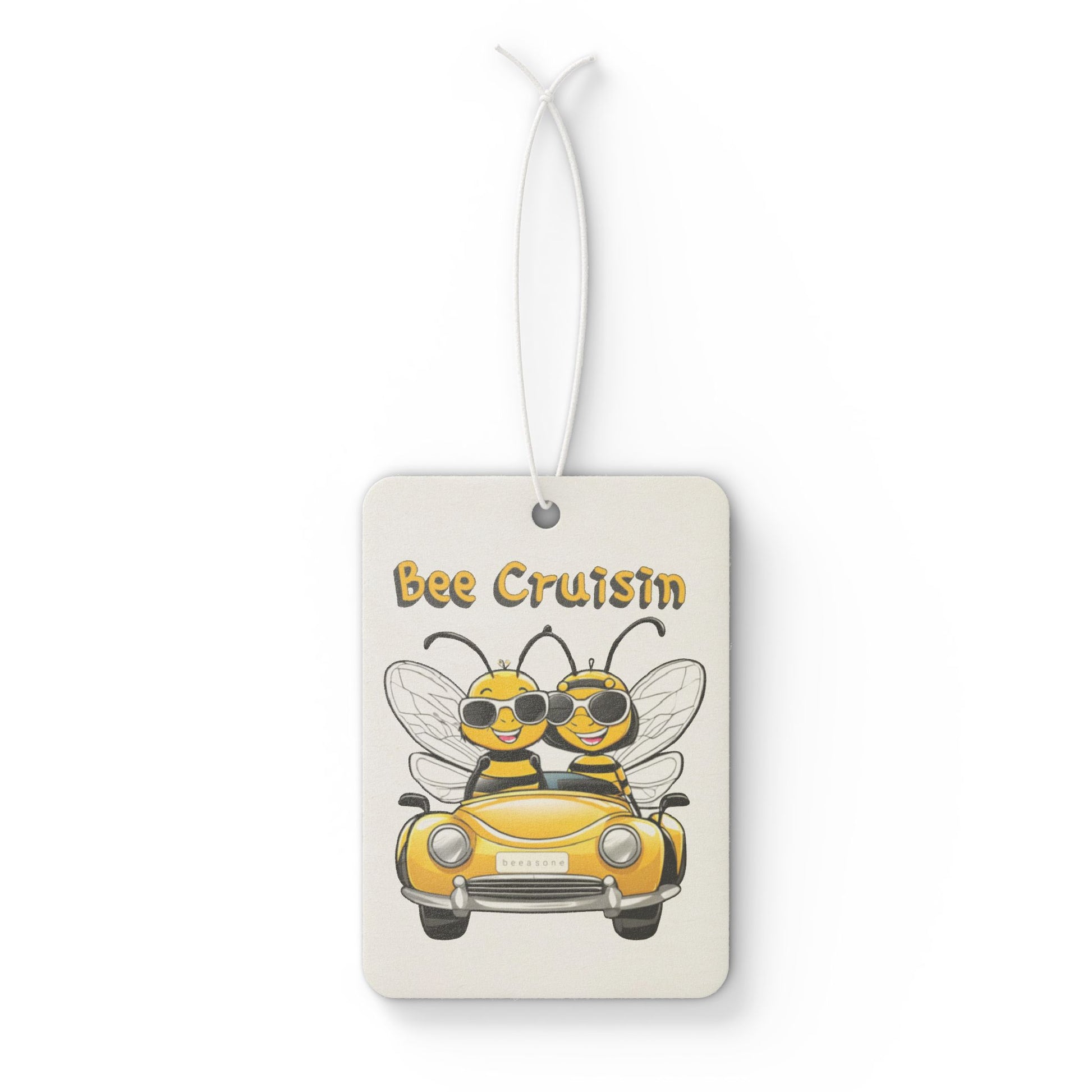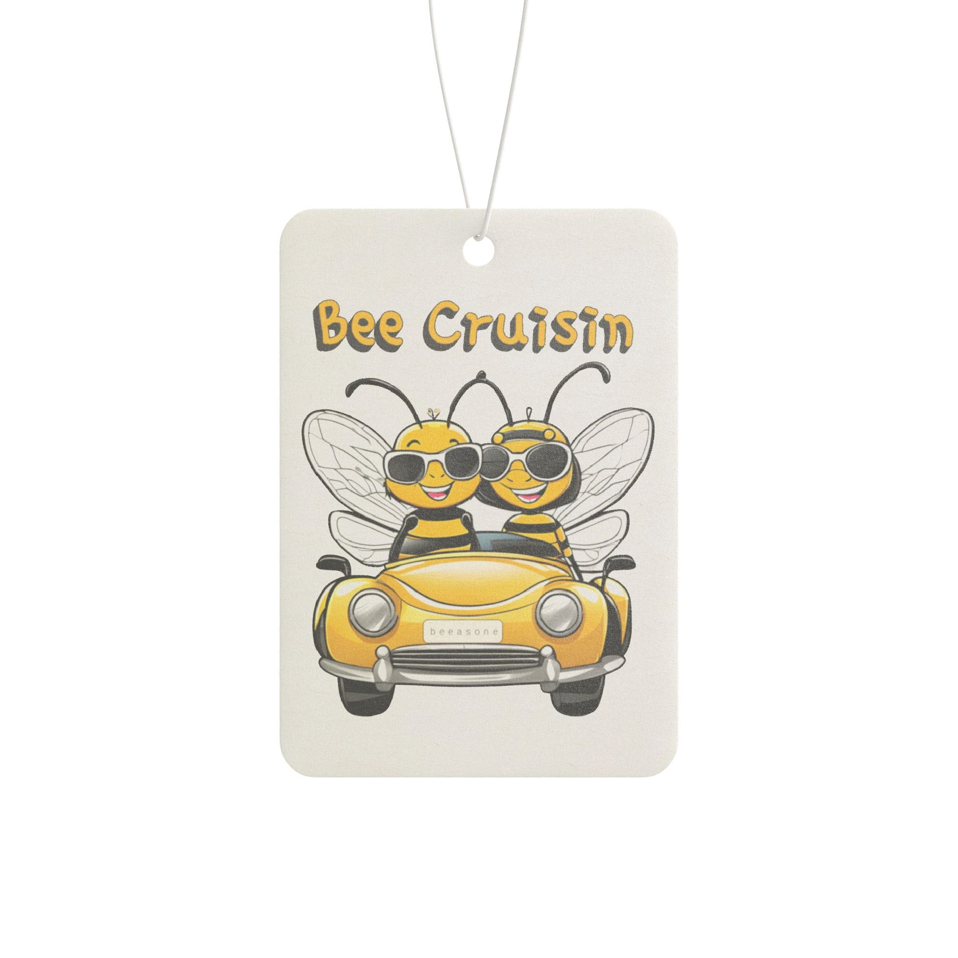 Add a touch of personality to your driving experience along with a pleasant aroma thanks to this unique car "Bee cruisin beeasone" air freshener. Available in three captivating scents: Pine, New Car, and Black Ice. Designed for both functionality and style, this air freshener enhances your car's interior while delivering long-lasting fragrance. Choose your favorite scent and enjoy a fresh, pleasant atmosphere on every ride.