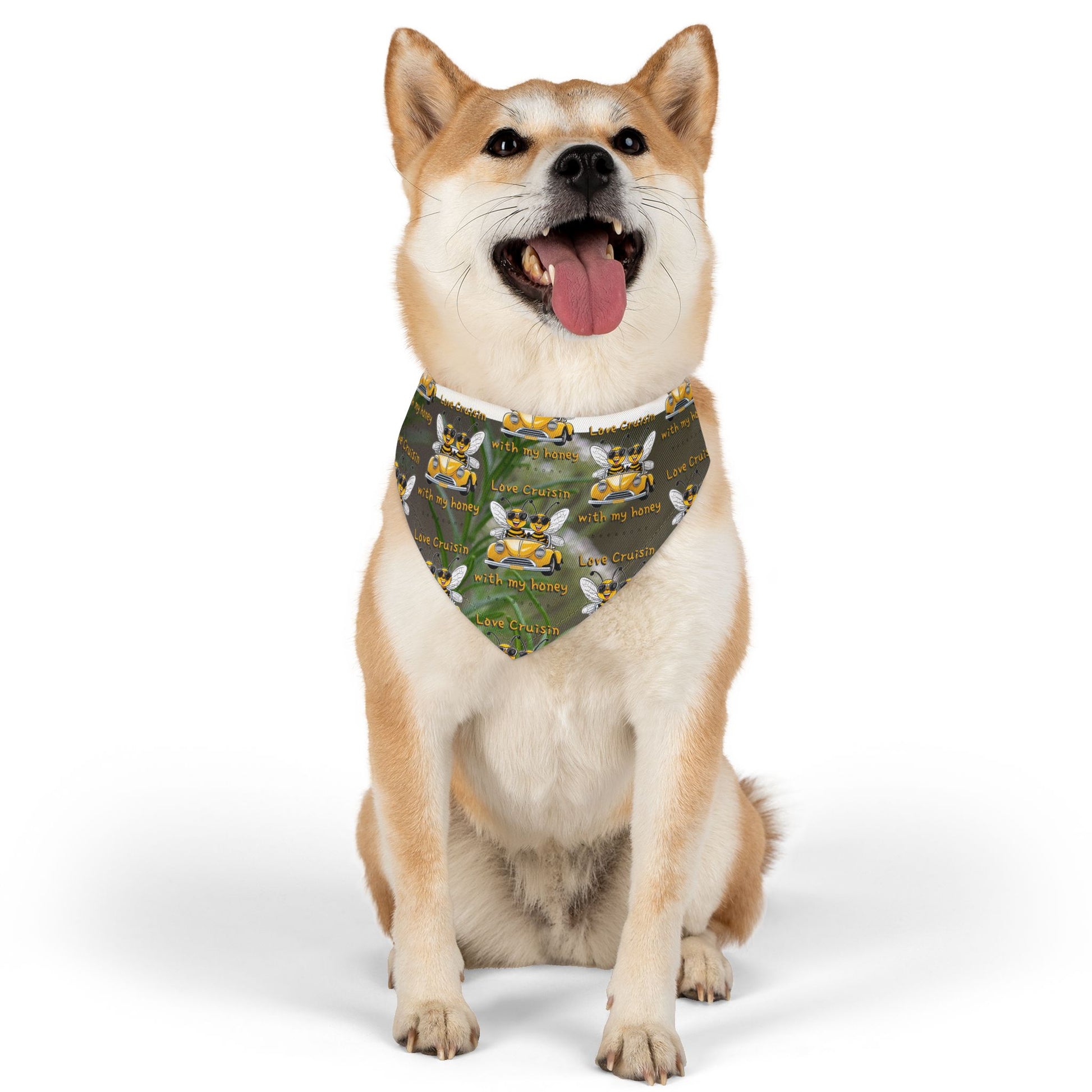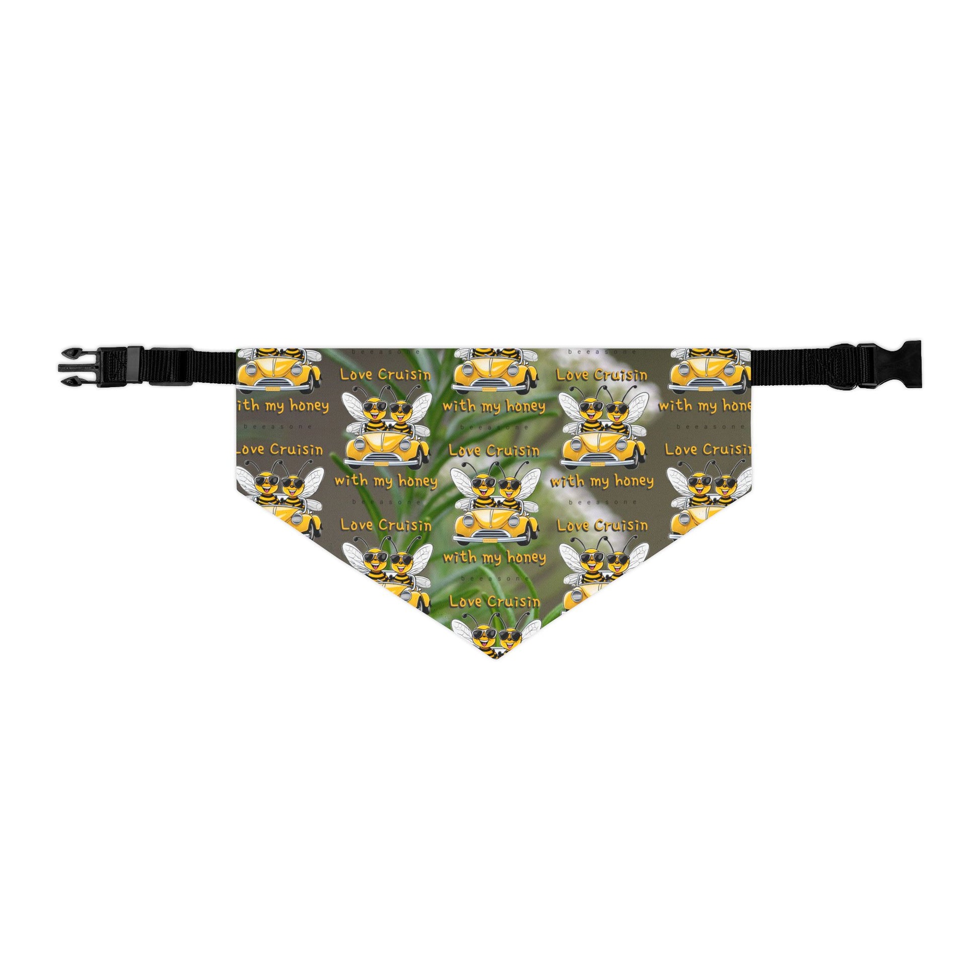How cool can a special couple look driving along a country road with their furry companion wearing a "Love cruisin with my honey beeasone" pet bandana only available from beeasone.com