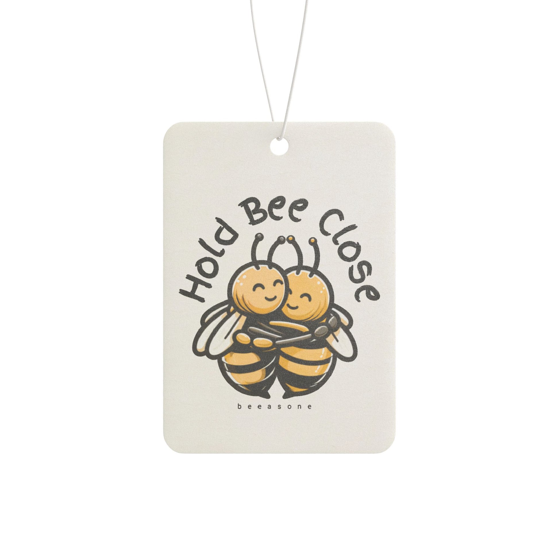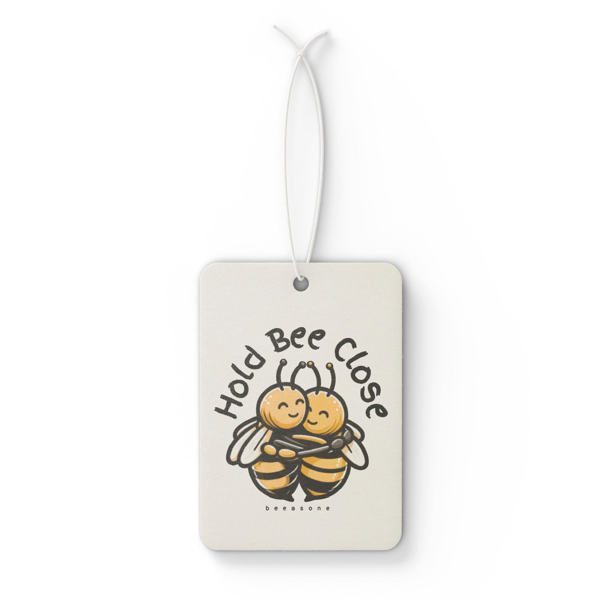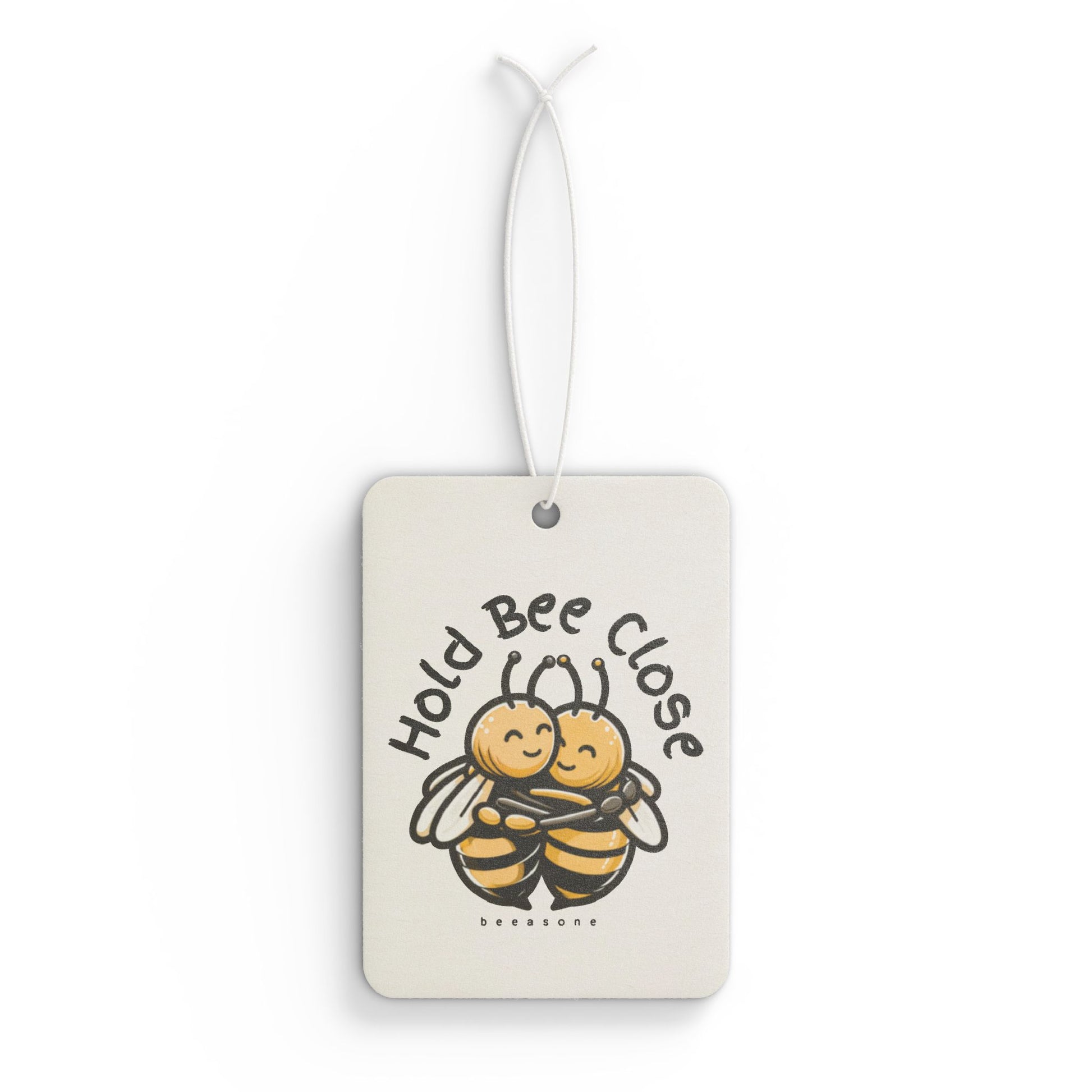 Add a touch of love to your driving experience along with a pleasant aroma thanks to this unique car "Hold bee close beeasone" air freshener. Available in three captivating scents: Pine, New Car, and Black Ice. Designed for both functionality and style, this air freshener enhances your car's interior while delivering long-lasting fragrance. Choose your favorite scent and enjoy a fresh, pleasant atmosphere on every ride.