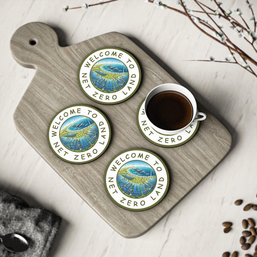 Net Zero Land Coaster - 9.5cm diameter (3.7") available as 1 piece or set of 4. Limited edition (V14)